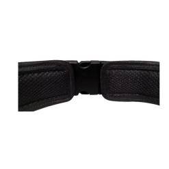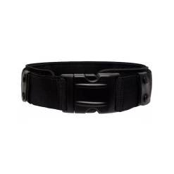 Cinto tático de guarnição, totalmente regulável, confeccionado em liga mista de Nylon 300 com Poliéster, alma semi rígida de PVC e fivela de plástico rígido.